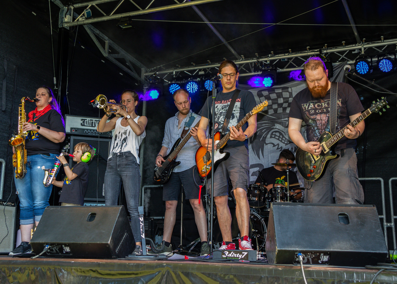 Die Bands , die ab etwa 14.30 Uhr bis 22.00 Uhr hier auf der Bühne standen, heizten das Publikum bereits ab dem ersten Ton ein und die Besucher hatten Spaß und Freude an deren Musik. Verschiedene musikalische Stilrichtungen, wie zum Beispiel Ska, Punk und Rock, waren von den Bands zu hören. Es spielte die Gruppen : Melting Cap, Lunte, 3dirty7, Lock 67. Leider könnte ich mir aus Zeitgründen die letzte Band, es sollte Municstreet sein, nicht mehr anhören, aber ich kann mir vorstellen, diese Band hat die Veranstaltung mit ihrer Musik gut zu Ende gebracht.