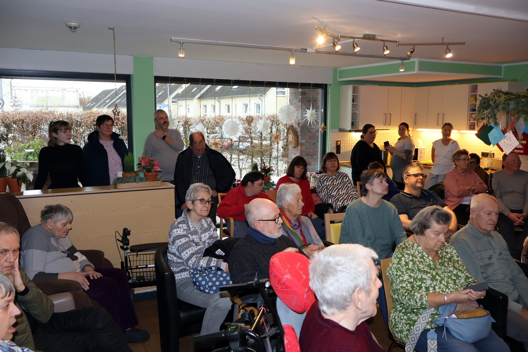 Der Projektchor der Evang. Noah-Kirchengemeinde unter der Leitung von Reinhard Kraus war gekommen und brachte ein Ständchen mit weihnachtlichen Liedern, zu denen auch kräftig mitgesungen werden konnte. Mit großem Applaus bedankten sich alle Anwesenden für das wunderschöne musikalische Geschenk in der Adventszeit.