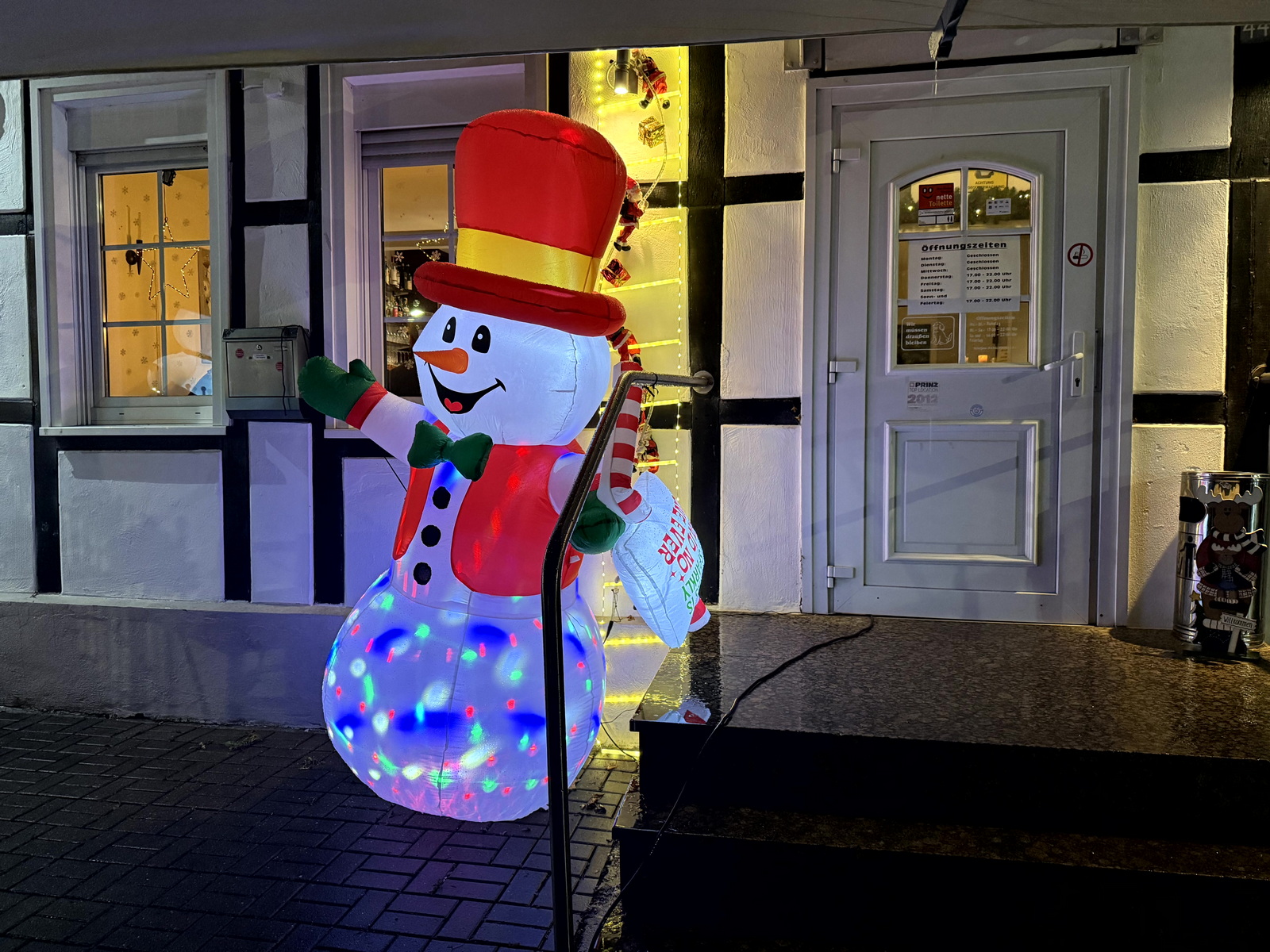 Zum zweiten Türchen am siebten Tag im Advent hatte Familie Potyka vor ihr Restaurant „Fachwerk“ in Dortmund-Bodelschwingh eingeladen. Im Biergarten und vor dem Lokal wurden die Gäste von beleuchteten Nikolausfiguren in Empfang genommen. Es regnete bedauerlicherweise ununterbrochen. Zum Glück stand ein Zelt bereit mit liebevoll geschückten Tischen und Bänken. Die vorhandenen Plätze waren schnell gefüllt. Draußen vor dem Zelt boten Stehtische unter einem zum Regenschirm umfunktionierten Sonnenschirm Platz für wetterfeste Gäste.