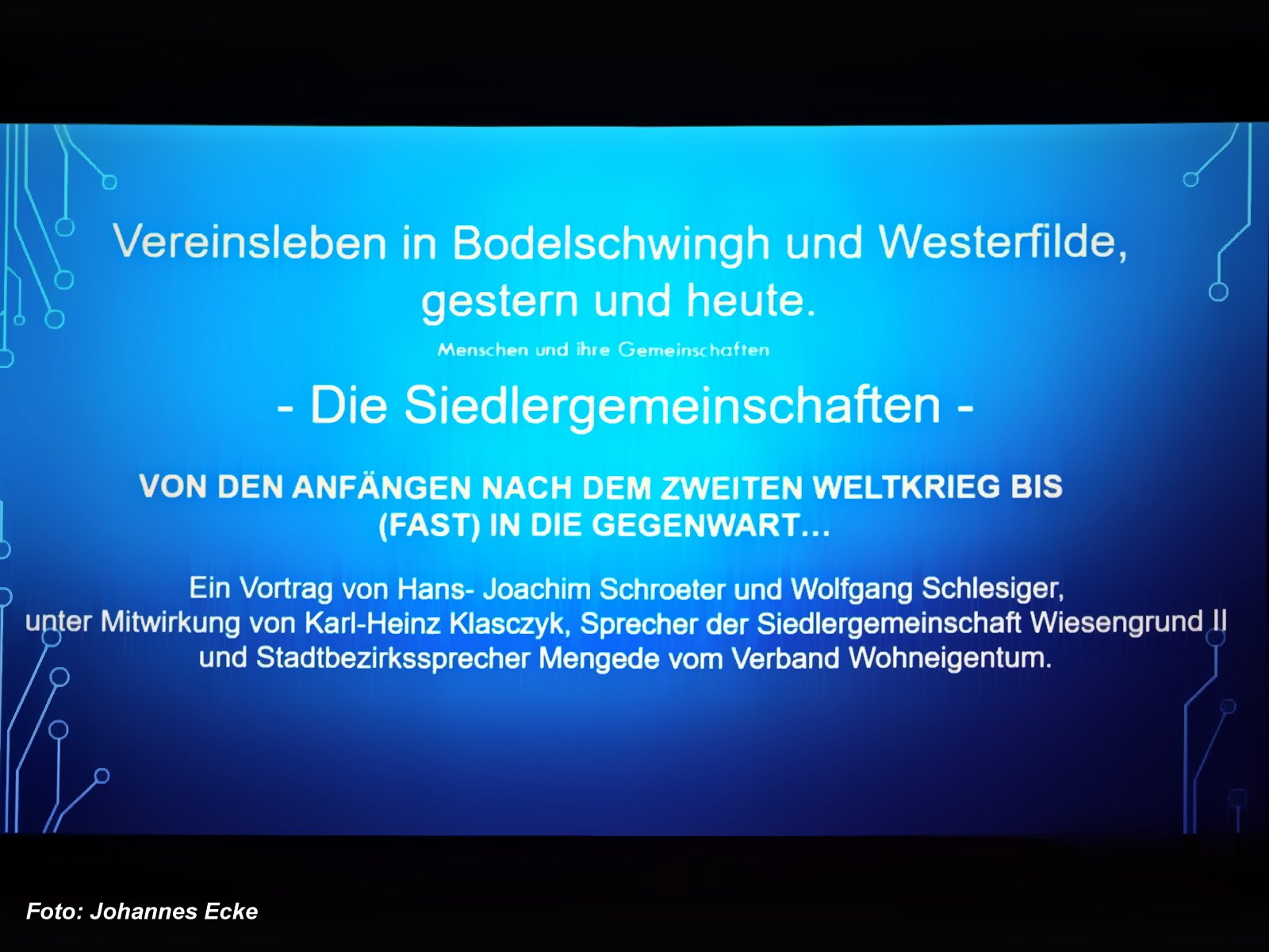 Monatstreffen am 14. Oktober 2025 zum Thema „Vereinsleben in Bodelschwingh und Westerfilde, gestern und heute“. Referenten: Wolfgang Schlesiger und Karl-Heinz Klasczyk. Schwerpunkt waren die Siedlergemeinschaften seit 1945 bis heute.