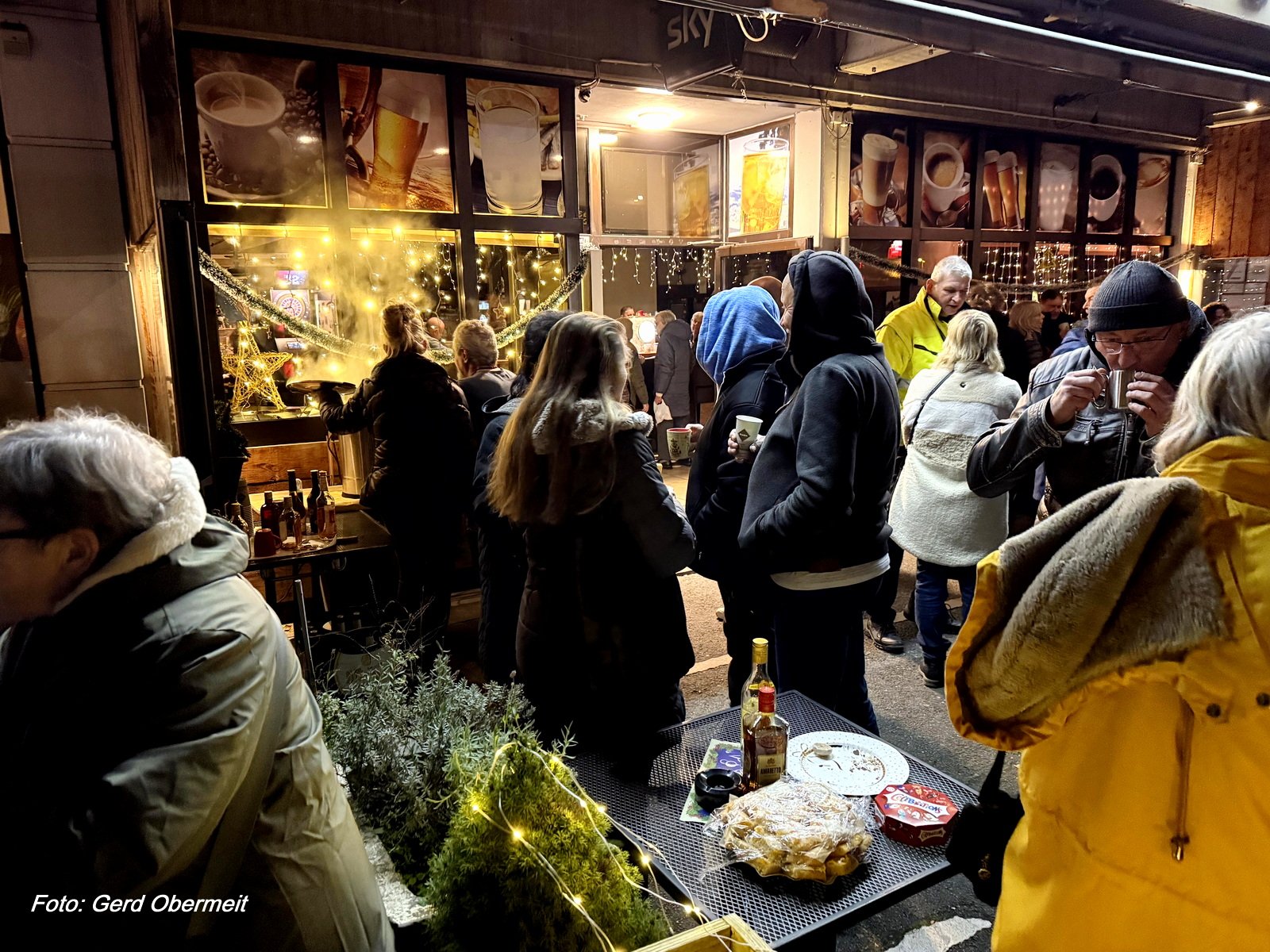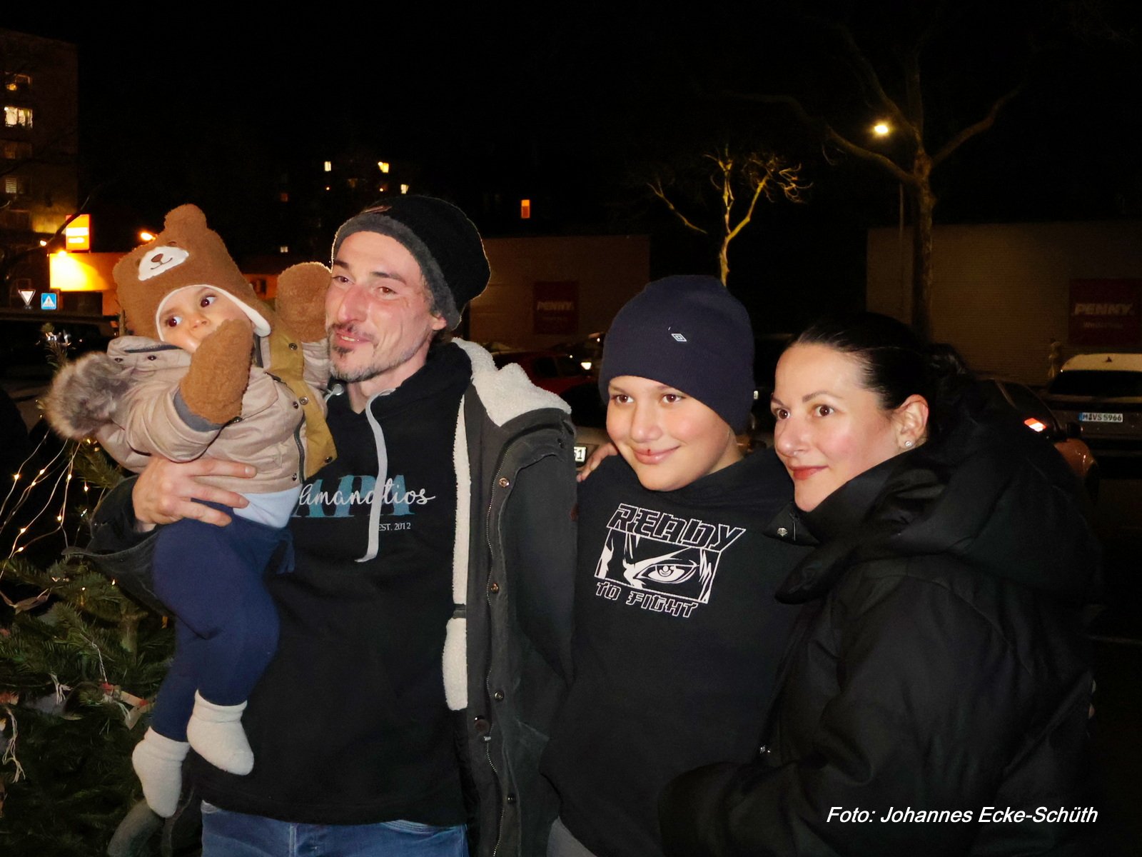 Lebender Adventskalender 2025: Türchen Nr. 15 am 15. Dezember 2025 bei Familie Tsakiridis vor ihrem Lokal „Café Crème (bei Taki)“ in Dortmund-Westerfilde.