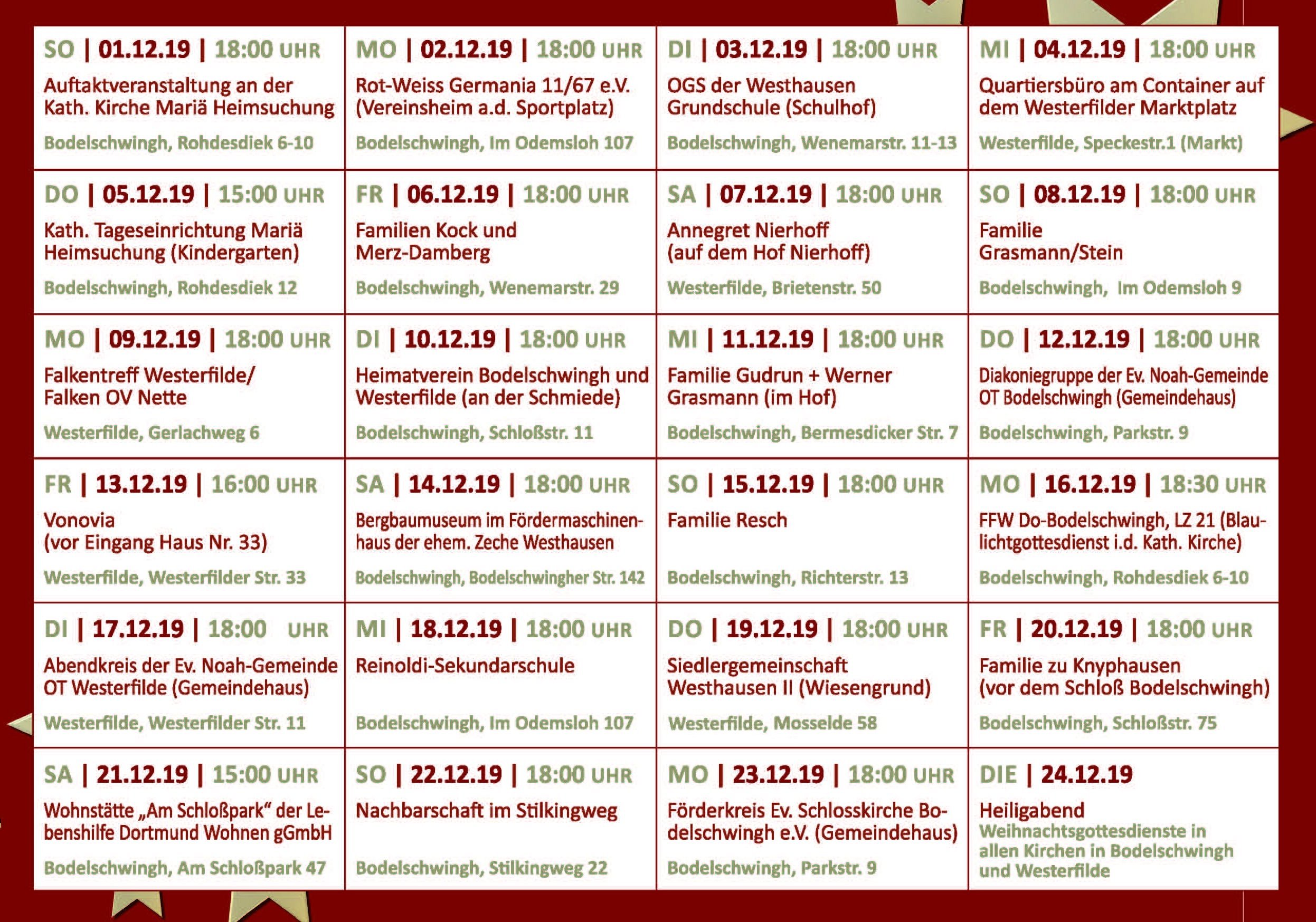 Lebender Adventskalender 2019 „Türchen Nr. 12“ am 12. Dezember 2019