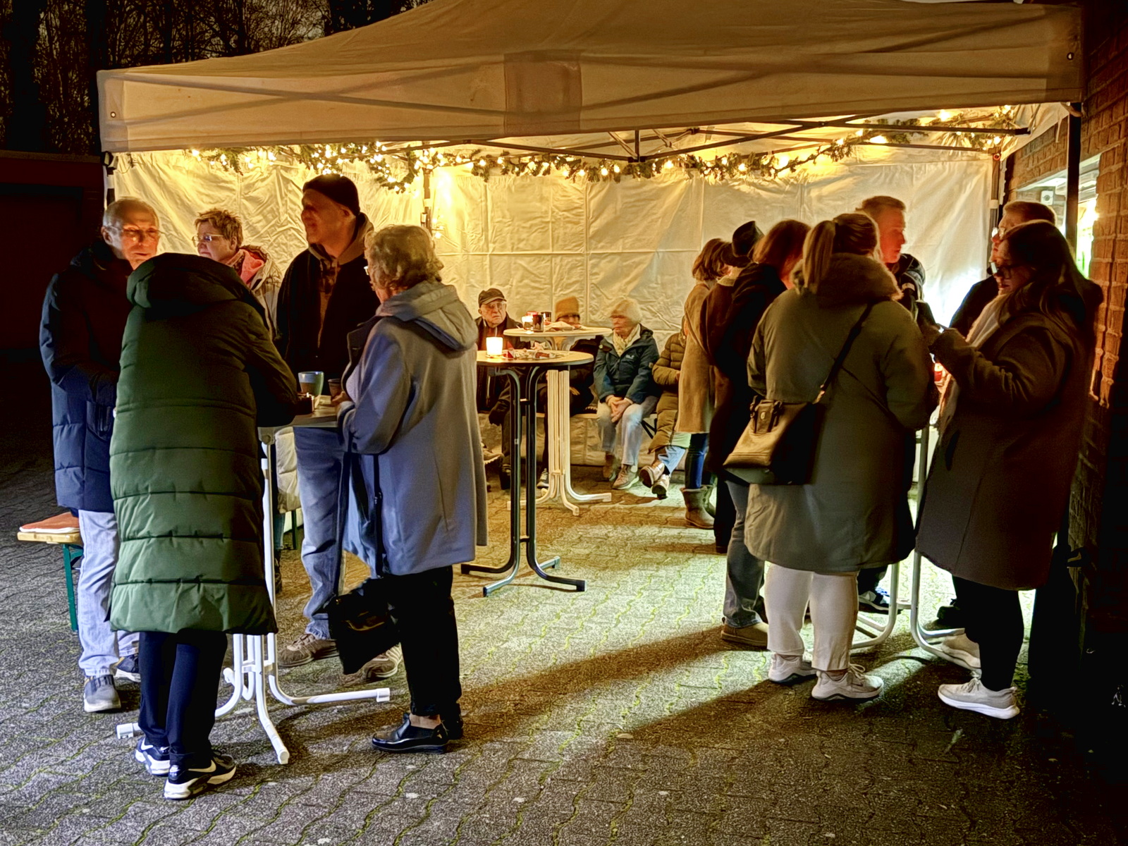 Die Vorsitzende Sarah Ponschek begrüßte die Gäste und las eine schöne kleine Geschichte vor. Es standen Tee, Punsch und frische Waffeln bereit. Die Besucherinnen und Besucher hatten sich um die Tische herum verteilt und waren in Gesprächen vertieft. Durch das „Türchen“ hatten einige der Gäste überhaupt erst erfahren, das der DLRG an dieser Stelle zuhause ist. Eine gute Gelegenheit also, mehr darüber zu erfahren. Danke für Eure erste Teilnahme.