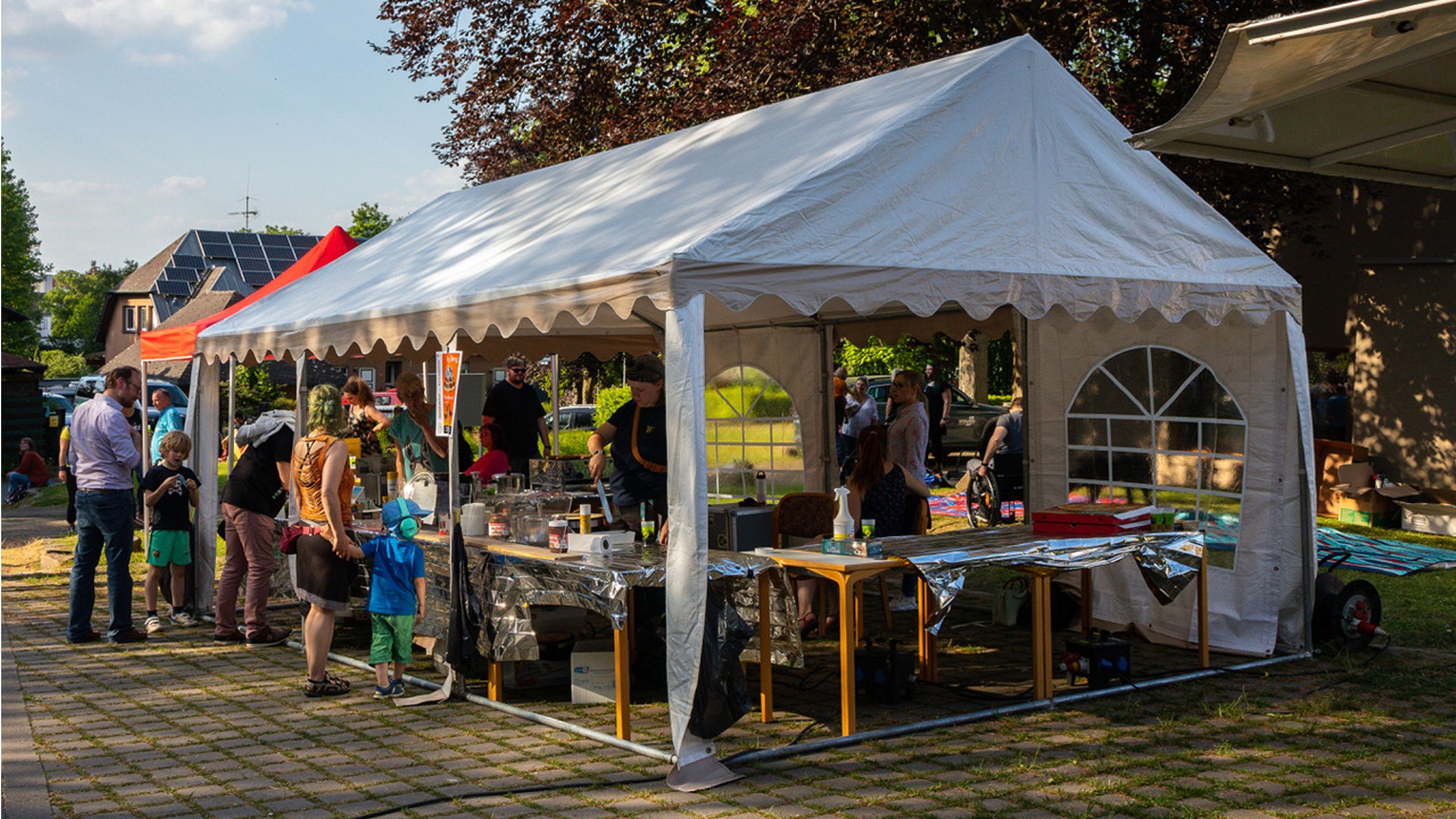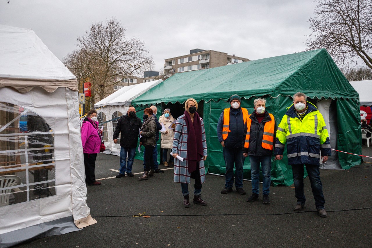 Die Mitarbeitenden der VONOVIA hatten Glühwein und Kinderpunsch vorbereitet, was die Besucherinnen und Besucher in Anbetracht des winterlichen Wetters sehr gerne in Anspruch nahmen. Neben den Bewohnern kamen auch Menschen aus ganz anderen Teilen von Bodelschingh und Westerfilde zu Besuch. Die FALKEN unterstützten die VONOVIA tatkräftig und boten frisch gebackene Waffeln an. Schokolade und Gebäck fand besonderes Interesse bei den Kindern.