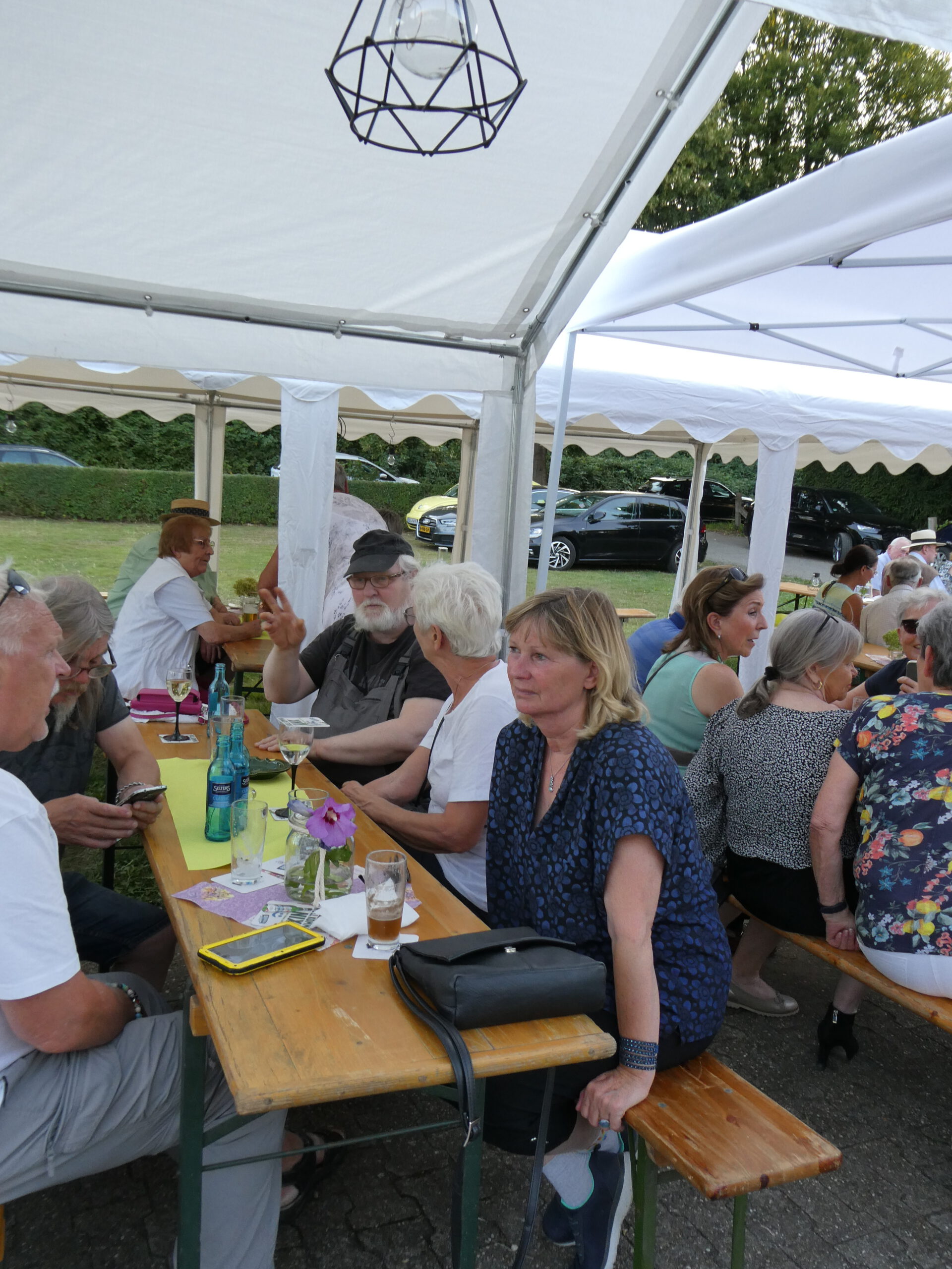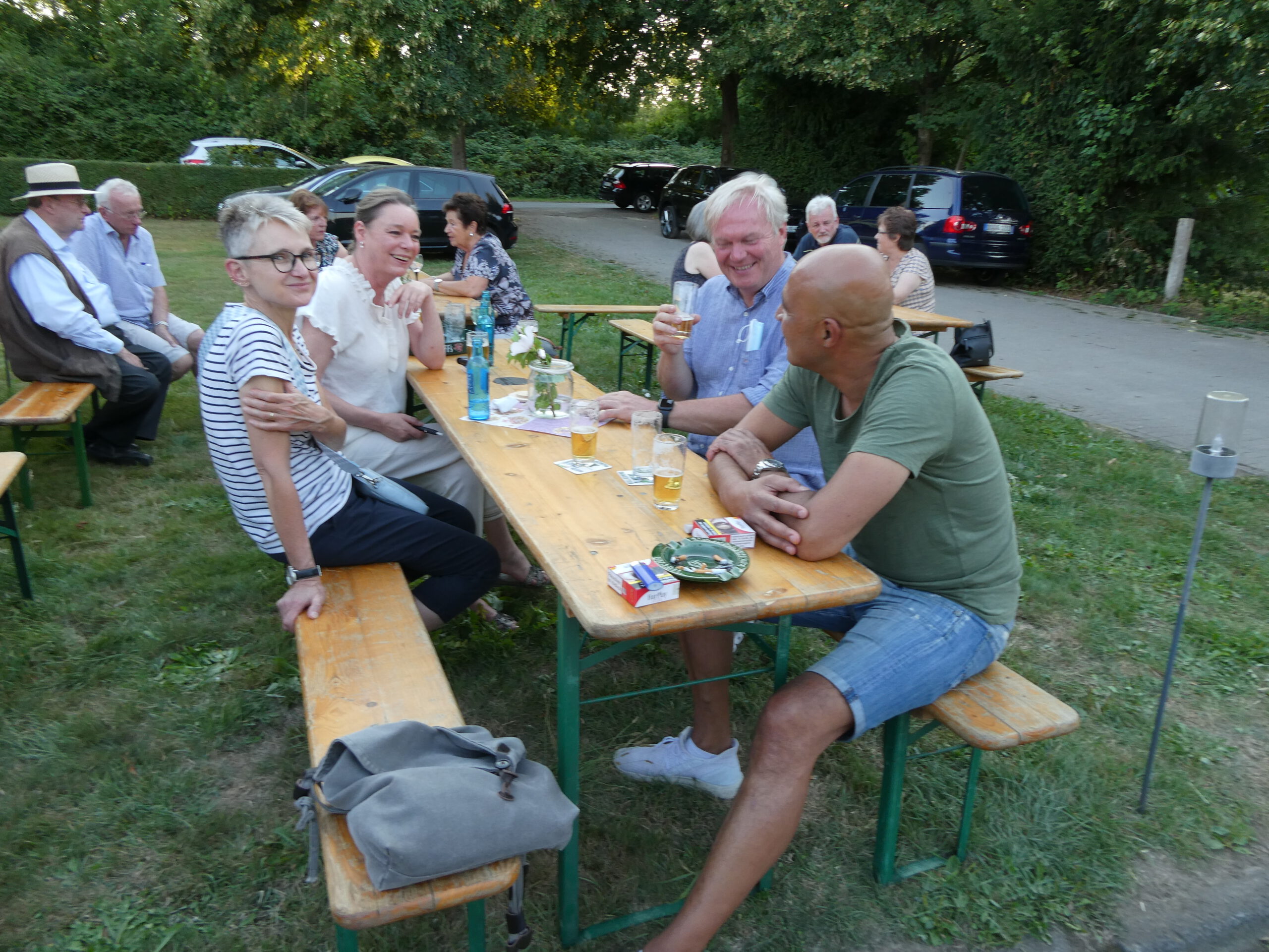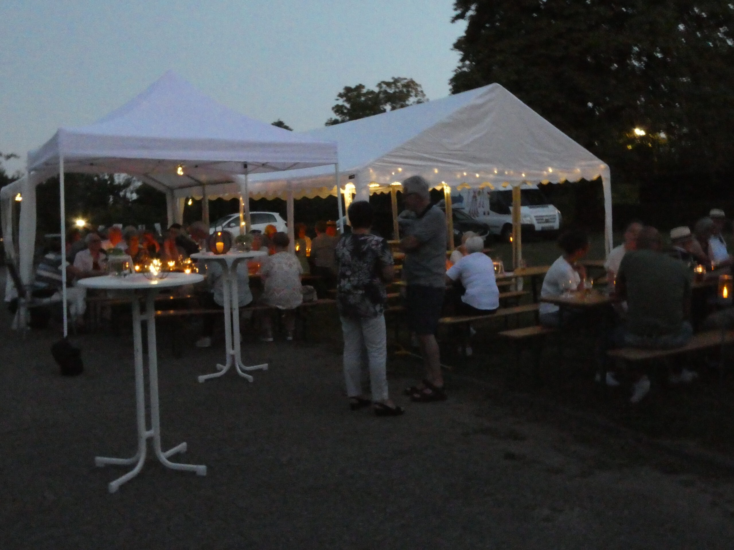 Nach und nach füllte es sich und am Ende wurden etwa sechzig Besucher gezählt, die am ersten Sommerfest unseres Heimatvereins teilnahmen. Ein leiser Windhauch und die schattenspendenden Bäume sorgten dafür, dass man es trotz des warmen Wetters gut aushalten konnte. Auch nach dem Anbruch der Dunkelheit blieb es der laue Sommerabend, den sich alle für das Fest erträumt hatten.